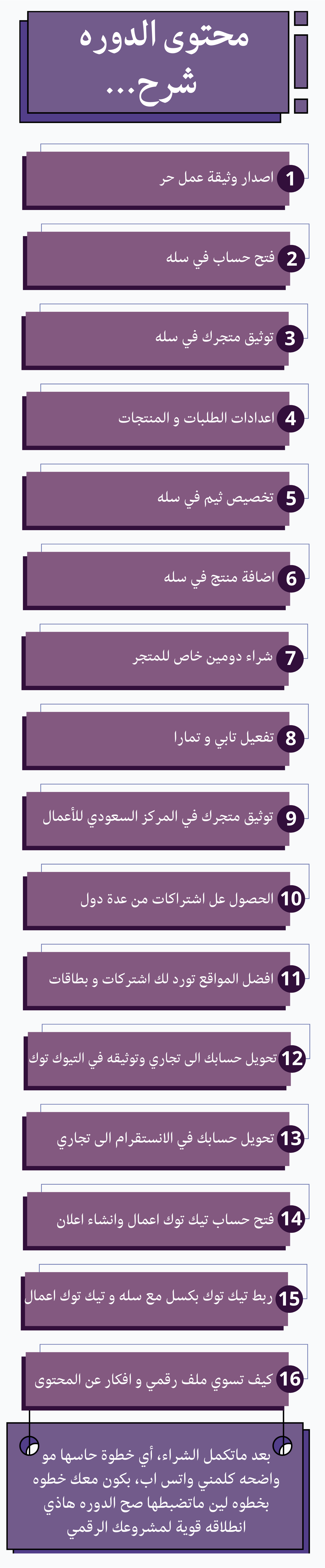 🔹 “التجارة الرقمية اليوم مو خيار، صارت فرصة ذهبية! 🚀 مع دورتنا بتتعلم كيف تفتح متجرك الإلكتروني وتبيع منتجات رقمية بسهولة، وتعرف الطرق اللي فعلاً ترفع دخلك. من البداية لين الاحتراف، كل شي مشروح خطوة بخطوة عشان تختصر وقتك وتوصل للنتيجة بسرعة”