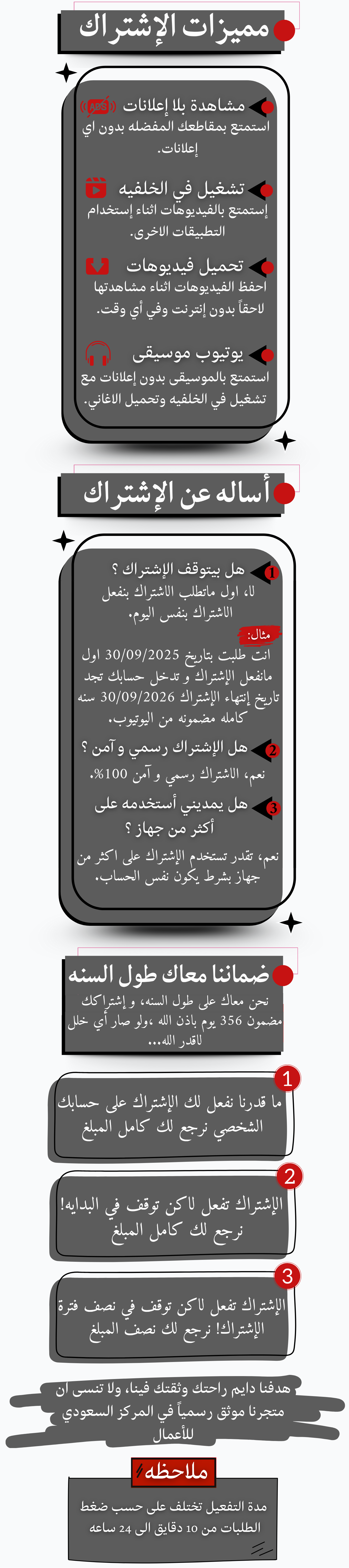 🚀 اشترك الان و خلك واثق مع يوتيوب بريميوم تعيش جو المتعة بلا توقف.. خلك مطمّن وضماننا يغطيك طول المدة! ✨